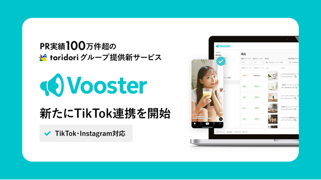 【アップデートのお知らせ】PR実績100万件超のtoridoriグループが提供する『Vooster』が新たにTikTok連携を開始~TikTok・Instagramでインフルエンサーと商品を拡散~