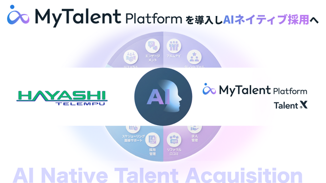 株式会社TalentX(本社:東京都新宿区、代表取締役社長 CEO:鈴木 貴史、証券コード:330A、以下「当社」)は、統合型タレントアクイジションプラットフォーム「MyTalent Platform」内のAIネイティブ採用CRM「MyTalent CRM」、リファラル採用プラットフォーム「MyTalent Refer(MyRefer)」が林テレンプ株式会社(以下「林テレンプ」)に導入されたことをお知らせいたします。
