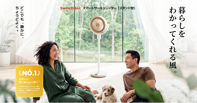 インテリアに溶け込む美しさと、IoTの知能を。SwitchBotから、空間に心地よい風を届けるスタンド型スマートサーキュレーターが新登場。