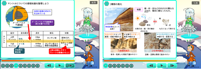 「すらら」地学基礎のレクチャー画面。アニメーションと図解を組み合わせ、地球科学の概念を直感的に捉えられます。