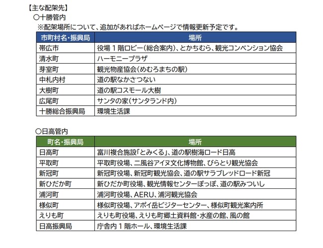 十勝・日高管内の道の駅や観光施設等で配布しております。
