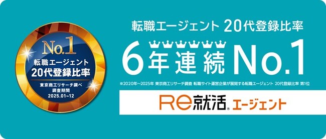 ■「Re就活エージェント」が、東京商工リサーチの調査で「20代登録比率」6年連続第1位を獲得