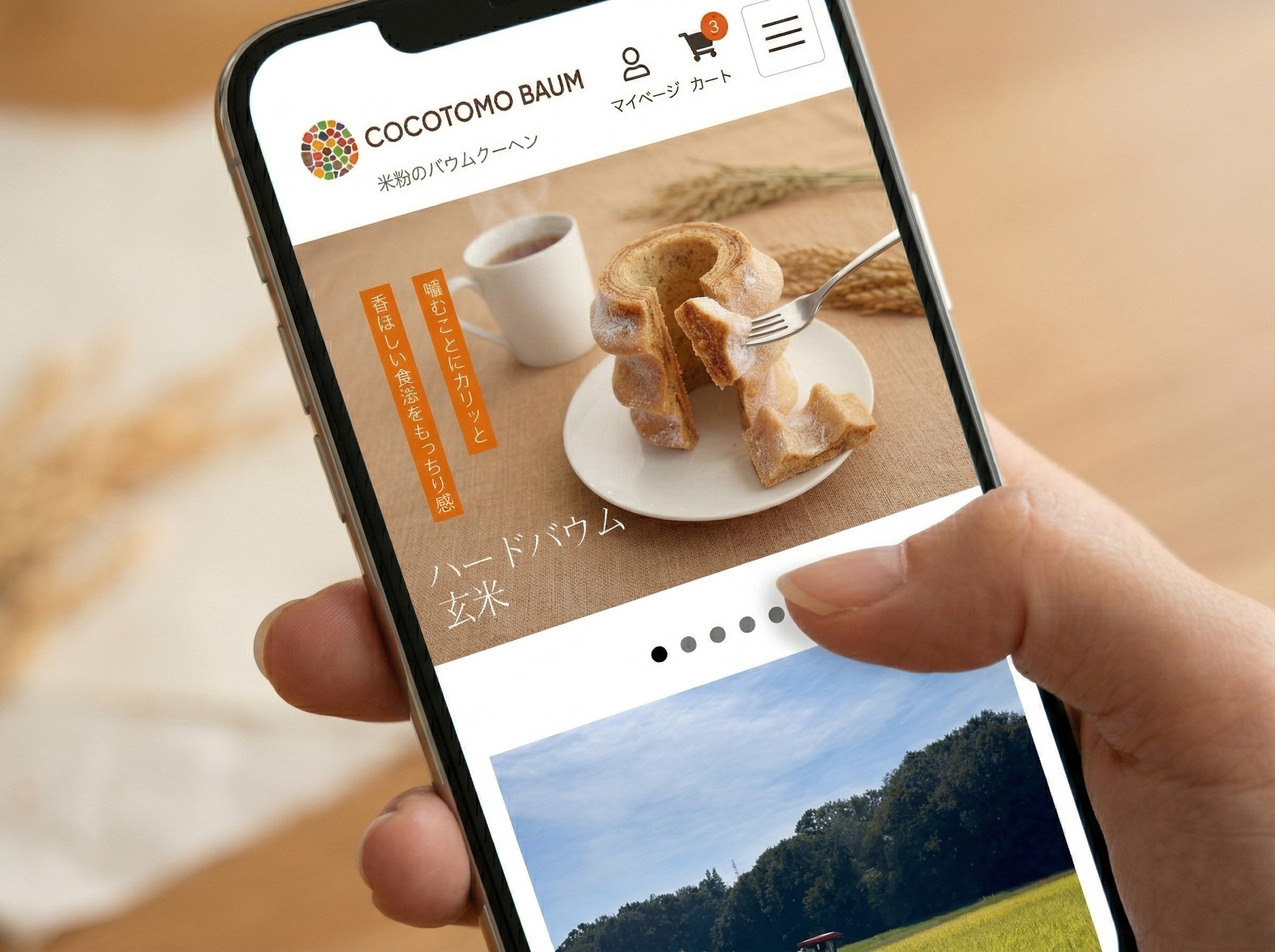 今回のリニューアルは、私たちが進める「生産・製造・販売」一体の取り組みを、オンラインでもさらに強化するものです。店舗へのご来店が難しい全国のお客様にも、自社農園のお米からつくるバウムクーヘンをよりスムーズにお届けするため、そしてギフト需要やリピート購入への対応を強化するため、販売基盤となるオンラインショップの刷新を行いました。