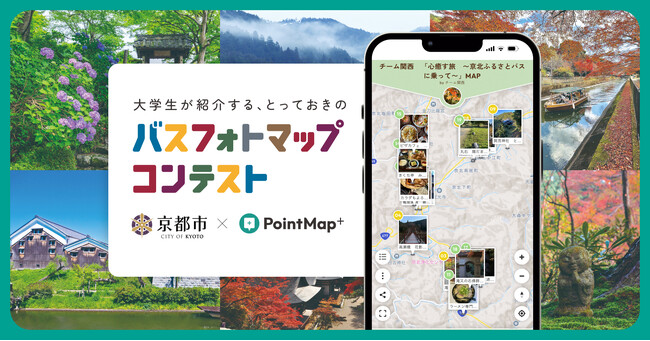スタートアップの株式会社iHistory(本社:東京都港区、CEO:中野一誠、以下、iHistory Inc.)は、京都市がモビリティ・マネジメント推進事業として実施する『大学生が紹介する「とっておきのバスフォトマップ」コンテスト』に、『PointMap+』が活用されたこと、ならびに応募作品および優秀作品展示エリアの空間デザインを担当したことをお知らせいたします。