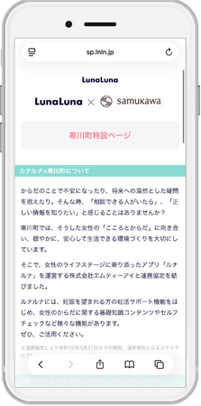 『ルナルナ』サービスを利用して、妊活や不妊治療に関する基礎知識の配信など、ライフステージに応じた女性の健康支援として知識啓発を実施する予定です。