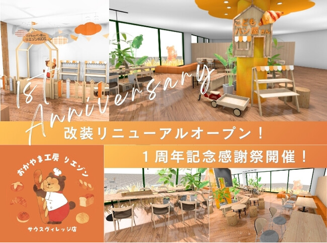 株式会社おかやま工房(本社:岡山県岡山市北区田中112-103、代表取締役:河上 祐隆)が運営する直営ベーカリー「おかやま工房 リエゾン サウスヴィレッジ店」(岡山市南区片岡2468)は、2026年3月26日(木)・27日(金)の2日間、店舗の改装リニューアルオープンと開店1周年を記念した「1周年記念感謝祭」を開催いたします。