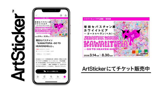 株式会社The Chain Museum(本社:東京都渋谷区、代表取締役:遠山正道、以下「The Chain Museum」)は、2026年3月14日(土)より埼玉県飯能市の現代美術館「HYPER MUSEUM HANNO(ハイパーミュージアム飯能)」で開催される、増田セバスチャンの個展「KAWAIITOPIA -GO TO HEAVEN(HELL)-」において、当社が運営するアート・コミュニケーションプラットフォーム「ArtSticker(アートスティッカー)」のチケット販売システムを導入開始いたしました。
