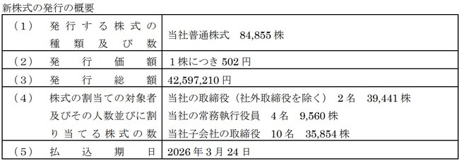 2026年2月26日付「譲渡制限付株式報酬としての新株式の発行に関するお知らせ」(257KB)