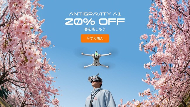 (2026年3月25日)Insta360の支援を受け、ドローン愛好家とエンジニアからなるチームによって設立されたAntigravityは、没入型8K360度全景ドローン「Antigravity A1」の春のセールを発表します。2026年3月26日(木)00:00~2026年4月26日(日)23:59の期間、Antigravity A1が20%OFFとなる新生活応援セールです。桜が咲き誇るこのベストシーズンに、家族や友人とともにA1で春の景色を空から満喫しませんか。次世代の飛行体験を楽しめる、またとないチャンスです。