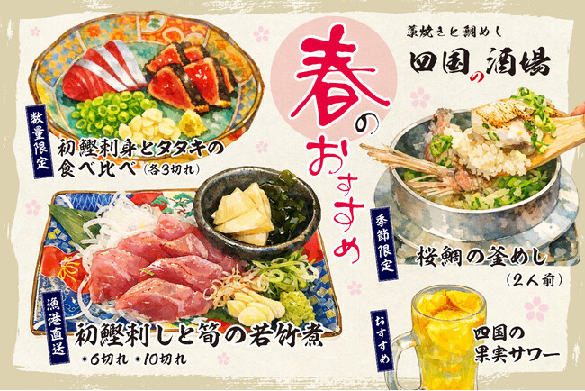 株式会社Brand Bank Company(本社:東京都新宿区、代表取締役社長:根本 寿一)が運営する大衆酒場「藁焼きと鯛めし 四国の酒場」は、2026年3月25日(水)より春季限定メニューを提供いたします。