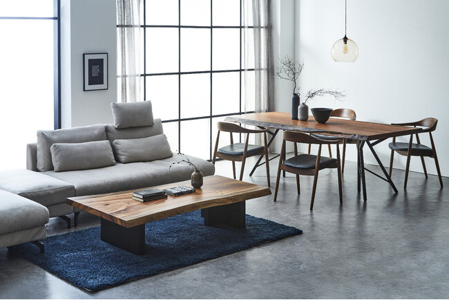 こうした課題を解決するため、今回公開したコーディネート事例ページでは、実際の住空間に一枚板テーブルや家具を取り入れた事例を紹介。