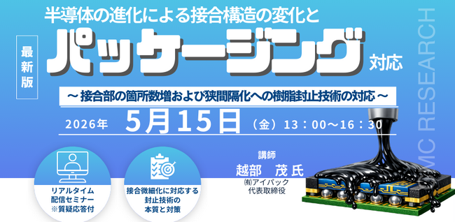【ライブ配信/ZOOM】「半導体の進化による接合構造の変化とパッケージング対応~ 接合部の箇所数増および狭間隔化への樹脂封止技術の対応 ~」セミナー!5月15日(金)主催:(株)シーエムシー・リサーチ