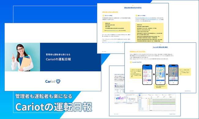 株式会社キャリオット(本社:東京都港区、代表取締役社長 齋藤 洋徳)が、法人の運転日報に関するホワイトペーパー『管理者も運転者も楽になる Cariotの運転日報』をリニューアルしたことをお知らせします。