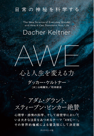 今、世界で注目が集まるテーマ「AWE(オー)」の全貌を明らかにした一冊『AWE 心と人生を変える力 日常の神秘を科学する』(ダッカ―・ケルトナー:著、山崎繭加、松本紹圭:訳 原題『Awe: The New Science of Everyday Wonder and How It Can Transform Your Life』)が、本日3月25日に発売となります。