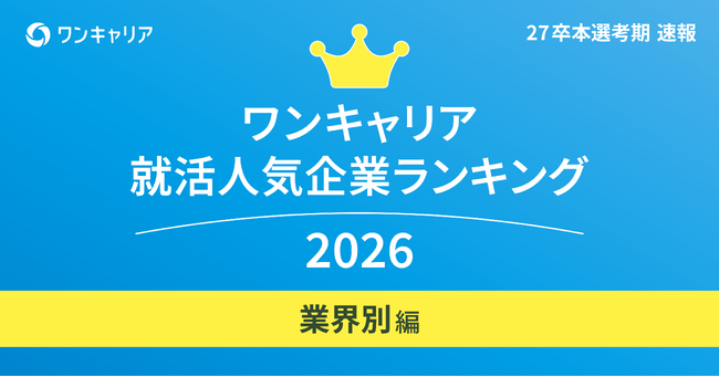 就活支援サービス「ワンキャリア」を展開する株式会社ワンキャリア(本社:東京都渋谷区、代表取締役社長 執行役員CEO:宮下 尚之、以下「ワンキャリア」)は、「ワンキャリア 就活人気企業ランキング【業界別編】(27卒本選考期速報)」を発表しました。