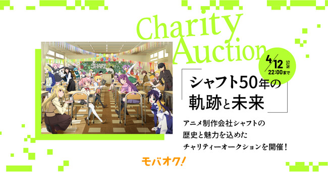 株式会社モバオク(本社:東京都渋谷区、代表取締役社長:小一原 宏樹、以下モバオク)が運営するオークションサービス「モバオク」にて、株式会社NTTドコモ・スタジオ&ライブが実施する『「シャフト50年の軌跡と未来」~アニメ制作会社シャフトの歴史と魅力を込めたチャリティーオークションを開催!~』を、2026年3月25日(水)から開始いたします。