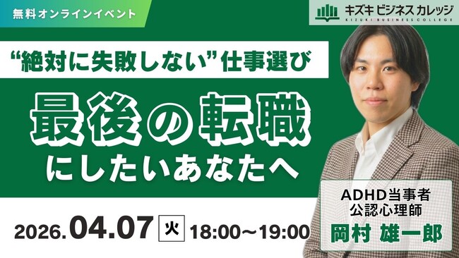 就労移行支援事業所・キズキビジネスカレッジ(KBC)は、2026年04月07日(火)に、短期離職の負のループを断ち切り、無理なく長く働ける適職に出会うための無料オンラインセミナーを開催します。