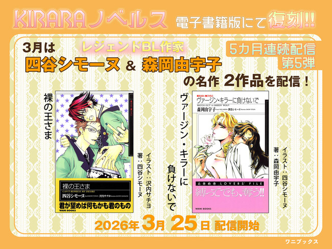 レジェンドBL作家・四谷シモーヌ&森岡由宇子の名作が電子書籍にて復刻!『裸の王さま』『ヴァージン・キラーに負けないで』2026年3月25日配信スタート