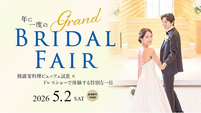 ソラーレ ホテルズ アンド リゾーツ株式会社(所在地:東京都港区、代表取締役社長:井上 理)が運営するロイヤルパインズホテル浦和は、2026年5月2日(土)に、年に一度の大型ウェディングイベント「グランドブライダルフェア」を開催いたします。本フェアでは、結婚式をご検討中のカップルに向けて、当ホテルが誇るウェディングの魅力を一日で体験いただける多彩なコンテンツをご用意しております。