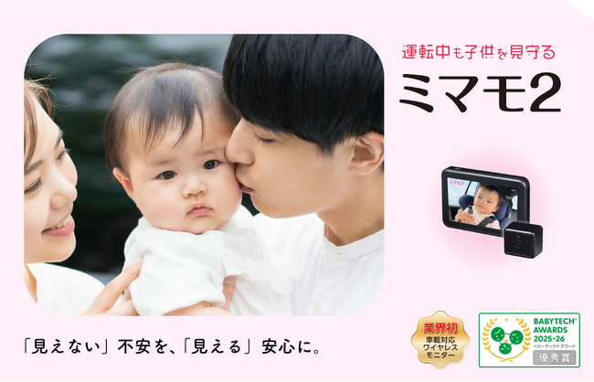 育児を支援するIT製品やサービスを表彰する国内最大級のアワード「BabyTech(R) Awards 2025-26 安全対策と見守り部門 優秀賞」を受賞した車載対応ベビーモニターです。一昨年に発売したミマモの進化版が「ミマモ2」です。
