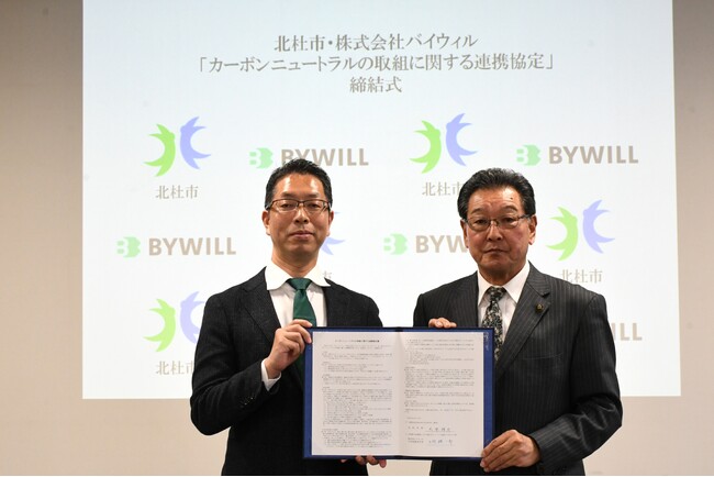 「GXをやりたくなる世界」を目指し、環境価値を活用した経済循環を推進する株式会社バイウィル(本社:東京都中央区、代表取締役社長:下村 雄一郎、以下「バイウィル」)は、山梨県北杜市(市長:大柴 邦彦、以下「北杜市」)と「カーボンニュートラルの取組に関する連携協定」を締結しました。