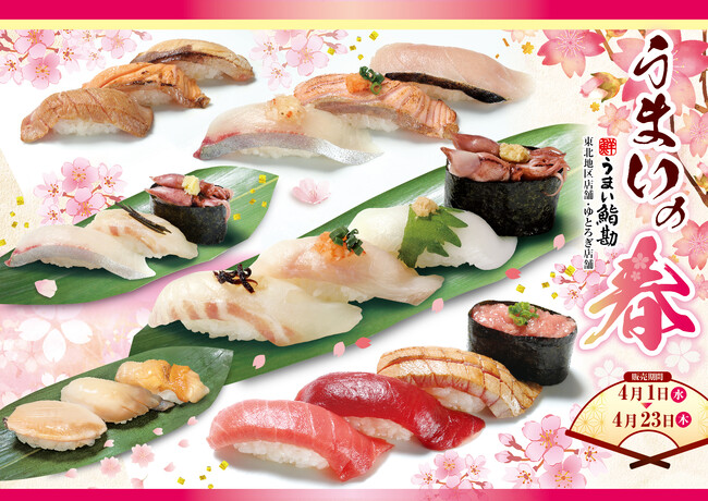 株式会社アミノ(本社:宮城県仙台市、代表取締役執行役員社長:上野 敏史)が運営する寿司業態 「うまい鮨勘」では、東北地区・ゆとろぎ店舗において「うまいの春」と題したフェアを2026年4月1日(水)から2026年4月23日(木)までの期間限定で開催いたします。