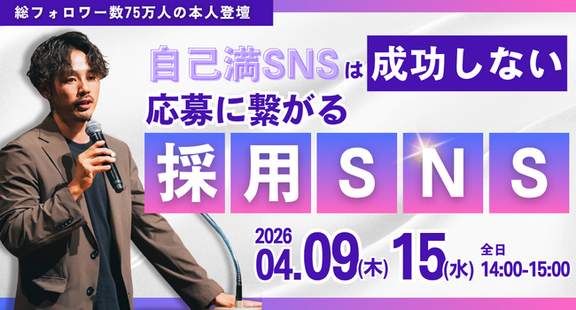 タイトル:自己満SNSでは成功しない!総フォロワー数75万人が伝授する応募に繋がる採用設計の極意日時 :A日程:2026年4月 9日(木) 14:00-15:00