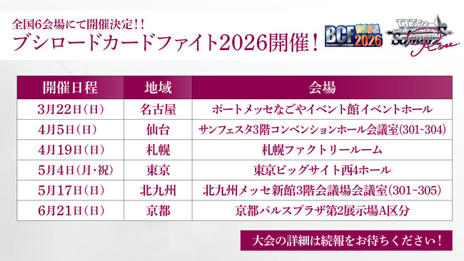 株式会社ブシロード(本社:東京都中野区、代表取締役社長:木谷高明、以下、ブシロード)は、2026年3月25日(水)に「ブシロードTCG戦略発表会2026 春」を開催し、ヴァイスシュヴァルツロゼの今後の展開を発表しましたことをご報告いたします。