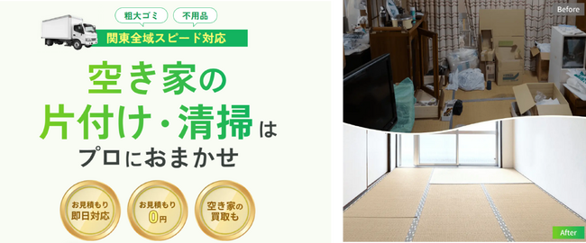 関東全域を対象に、写真や動画による簡単見積もり、立ち会いなしでの作業対応、作業後の報告までを一貫して行うことで、遠方在住の所有者や、空き家管理に課題を抱える方の負担軽減を目指します。