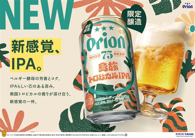 オリオンビール株式会社(本社:沖縄県豊見城市、代表取締役社長 兼 執行役員社長CEO 村野 一)は、「オリオン 75BEER」(オリオン ナゴビール)ブランドより、新商品「75BEER 島旅トロピカルIPA」を発売いたします。