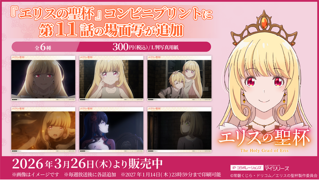 全国の対象コンビニで利用可能なプリントサービスとして提供中のTVアニメ『エリスの聖杯』コンビニプリントの「場面写」に第11話を追加しました。