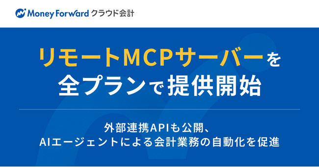 株式会社マネーフォワードは、クラウド型会計ソフト『マネーフォワード クラウド会計』において、AIエージェントを通じて会計業務を実行する「リモートMCP(Model Context Protocol)サーバー」(以下「MCPサーバー」)を、本日より全プランで提供開始します。あわせて、これまで一部のユーザーに限定していた外部システム連携用のAPIも、全プランのユーザーへ向けて公開します。