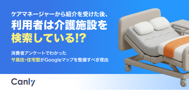 Google ビジネスプロフィール(TM)︎・HP・各SNSの一括管理サービス「カンリー店舗集客」の開発・提供を行う株式会社カンリー(所在地:東京都品川区、代表取締役:辰巳 衛,秋山 祐太朗)は、介護業界向けに「ケアマネージャーから紹介を受けた後、利用者は介護施設を検索している!?消費者アンケートでわかったサ高住・住宅型がGoogleマップを整備すべき理由」を無料公開しましたので、ご案内いたします。