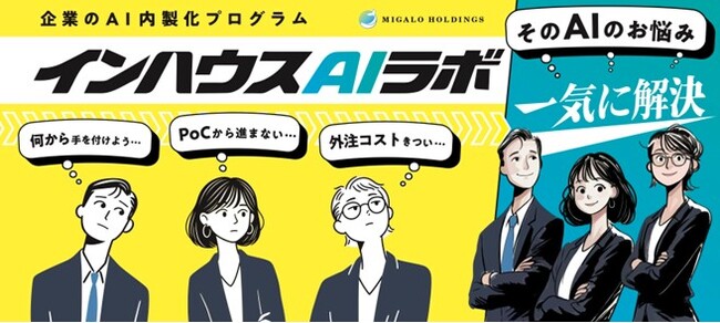 『インハウスAIラボ』は、ミガロHDが展開する企業のAI内製化プログラムです。弊社のAIエンジニアが、お客様社内の開発メンバーの一員として、企業の課題やニーズに合わせたAIアプリケーション開発、各種AIツールを活用したAI駆動開発を推進します。当プログラムを通じて、AIエンジニアがお客様の現場で実践し、共に手を動かすことで、お客様自身で自走できるAI開発体制の構築を実現します。