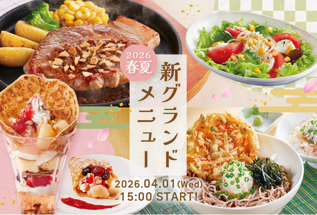 ファミリーレストランのジョイフル(本社:大分県大分市 代表取締役社長:穴見くるみ)は、2026年4月1日(水)15時より、春夏の新グランドメニュー、新ランチメニュー、新キッズメニューの販売を開始いたします。