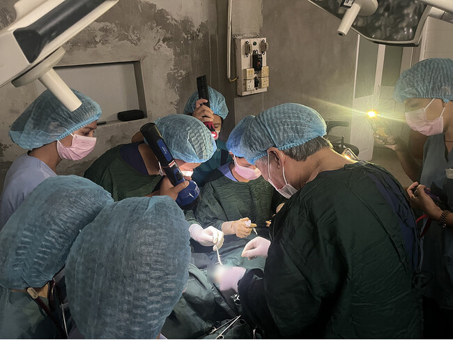 発災以来約2ヶ月ぶり且つ停電下に行った手術(6月2日撮影)