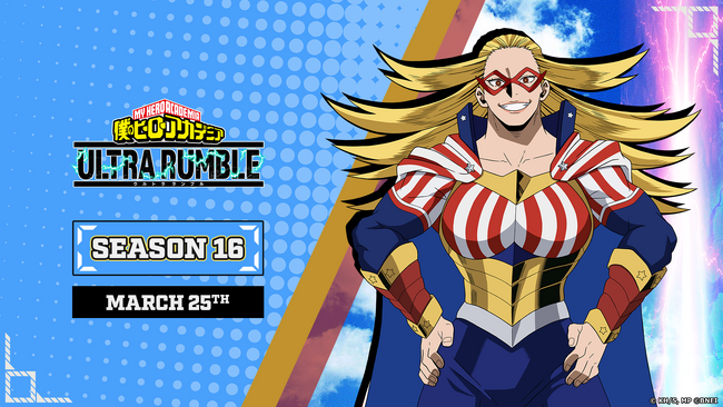 PlayStation(R)4/STEAM(R)/Xbox One向けオンライン専用ゲーム『僕のヒーローアカデミア ULTRA RUMBLE』において、2026年3月25日より2.5周年期間および、シーズン16が開幕し、新たなプレイアブルキャラクターとして、「スターアンドストライプ」が参戦したことをお知らせいたします。また、2.5周年期間のお得なガシャ情報を合わせてお知らせいたします。