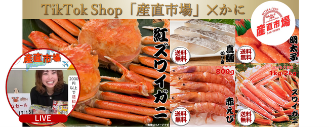 今回、本ズワイガニや真鱈、明太子、赤えび、人気のご当地グルメなどの商品を追加いたしました。TikTok Shop「産直市場」でのライブ配信を通して、ライバーが実際に商品を紹介しながら、その魅力やおすすめの食べ方などをリアルタイムで発信しています。