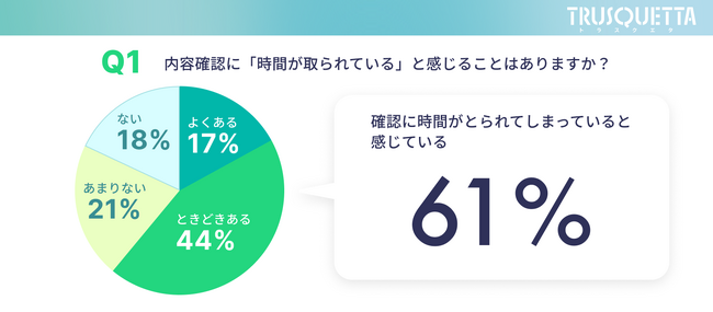 株式会社トラスクエタが実施した調査により、6割以上の働く人が確認作業に多くの時間を割いていることが判明しました。