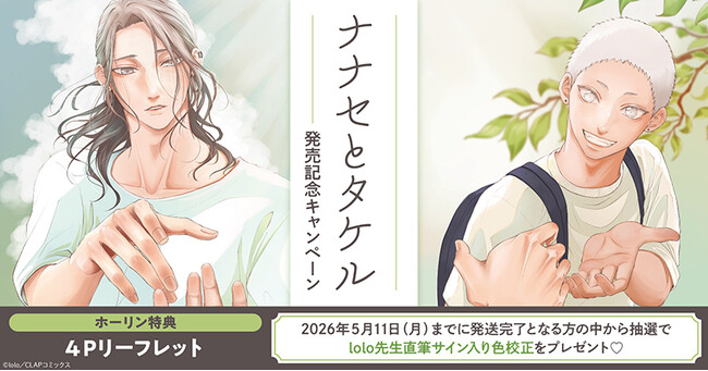 ホーリンラブブックスではlolo先生最新コミックス『ナナセとタケル』発売を記念して、豪華キャンペーンを実施いたします!