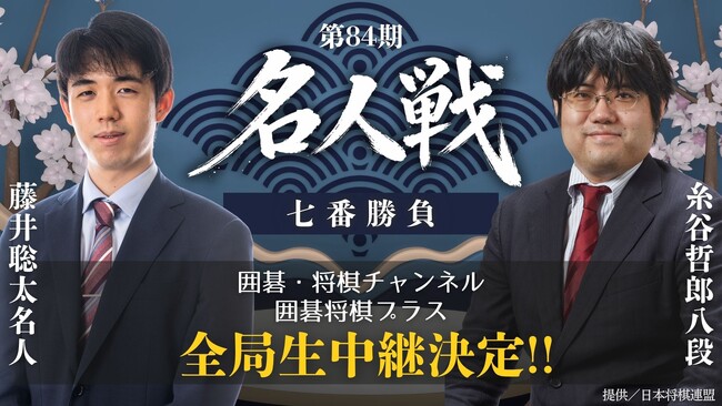 株式会社 囲碁将棋チャンネル(本社:東京都千代田区、代表取締役社長:山口哲史)が運営するCS放送「囲碁・将棋チャンネル」、YouTubeチャンネル「囲碁将棋プラス」では、『第84期名人戦 七番勝負 藤井聡太名人 vs 糸谷哲郎八段』を全局生中継いたします!