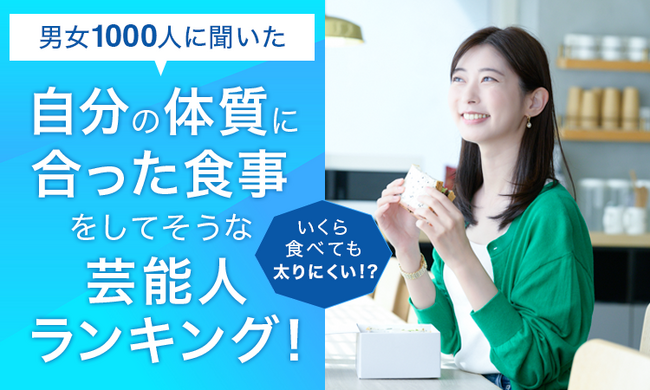 ということで今回はジェネシスヘルスケア株式会社と共同で、全国の男女1000名を対象に、「自分の体質に合った食事をしてそうな芸能人」についてのアンケートをおこないました。