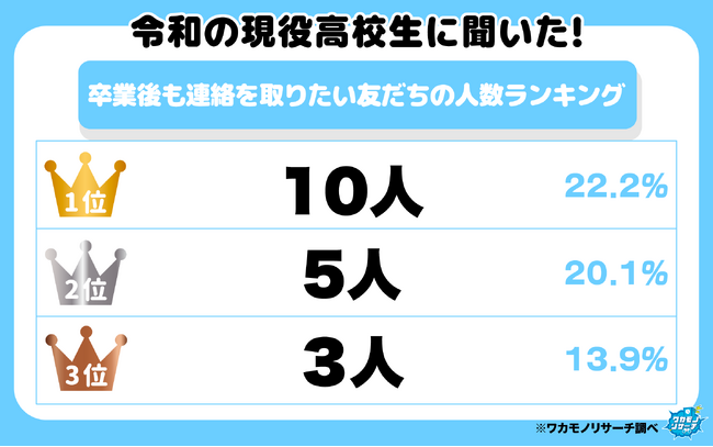 【卒業後も連絡を取りたい友だちの人数ランキング!1位は「10人」】