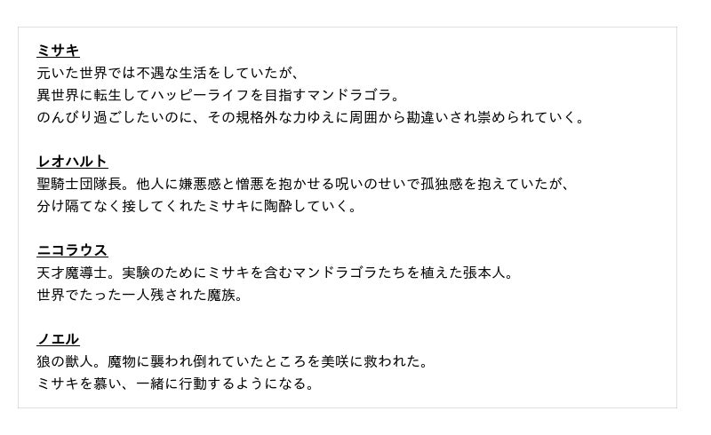 [画像1: https://prcdn.freetls.fastly.net/release_image/101562/646/101562-646-0d53707b680448b224df818509a8ca38-2666x1896.jpg?width=536&quality=85%2C75&format=jpeg&auto=webp&fit=bounds&bg-color=fff ]不遇な死を迎えたミサキは、叫ぶだけで殺戮モンスターと化す規格外マンドラゴラに転生する!