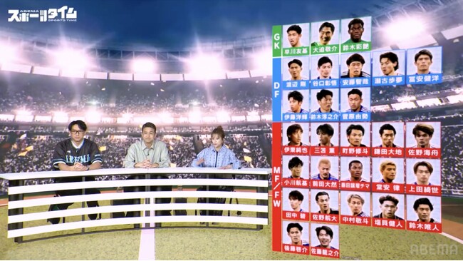 本放送回では、メインコメンテーターを務める元メジャーリーグ選手・川崎宗則氏、元サッカー日本代表の稲本潤一氏が出演し、男子サッカーの話題をお届けしました。
