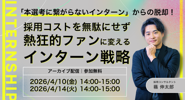 タイトル:「本選考に繋がらないインターン」からの脱却!採用コストを無駄にせず熱狂的ファンにかえるインターン戦略開催日 :A日程:2026年4月10日(金) 14:00-15:00