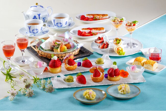 松江市では、松江藩七代藩主で茶人としても知られる松平治郷(不昧公)の命日である4月24日を「茶の湯の日」と定め、毎月24日を茶の湯文化に親しむ日としています。当ホテルではこの日に合わせ、松江に息づく茶の湯文化とホテルならではの食の魅力を融合させたアフタヌーンティーを企画しました。春のいちごを主役にしたスイーツや、板長が仕立てる和のセイボリー、松江の老舗和菓子店の上生菓子などを通して、松江の食文化をゆったりとしたティータイムの中でお楽しみいただけます。