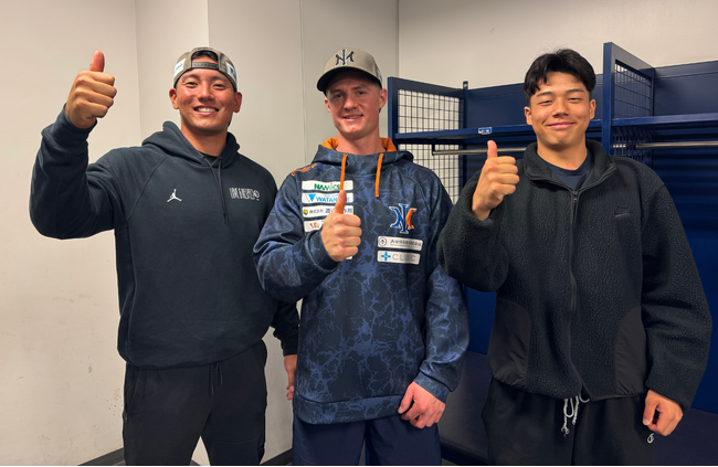 左から、比嘉天佑選手、ダニエル・フライ選手、石山愛輝選手