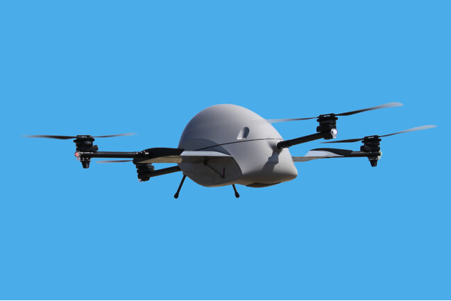 新技術ActiveWing(R)搭載の新型物流ドローンの試作機(ホバリング時)