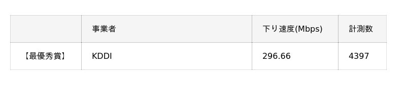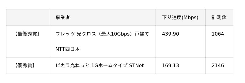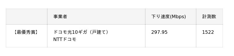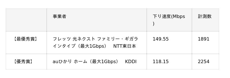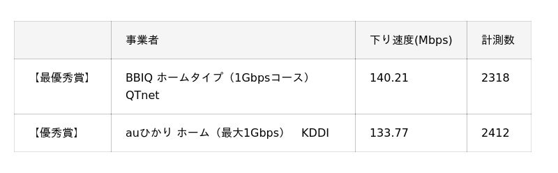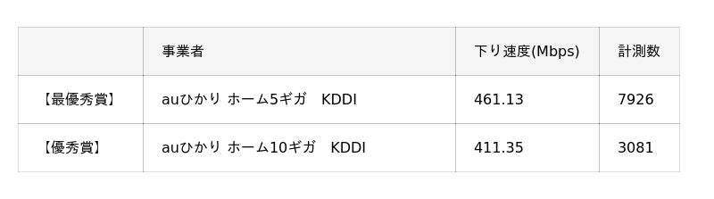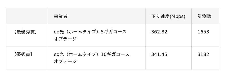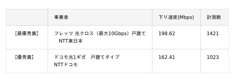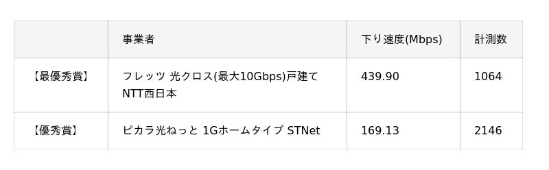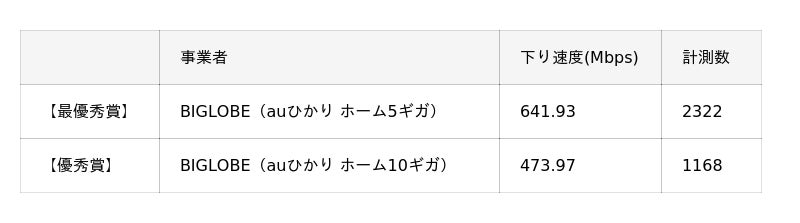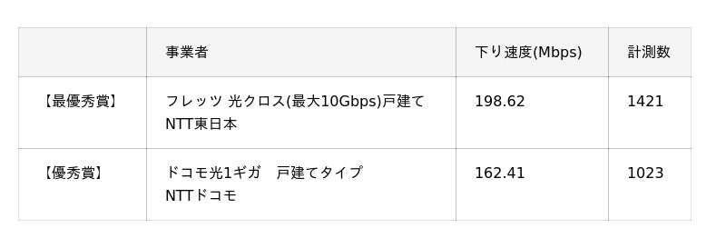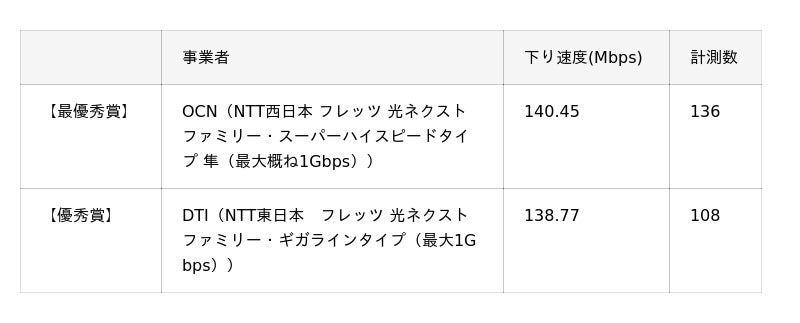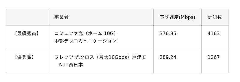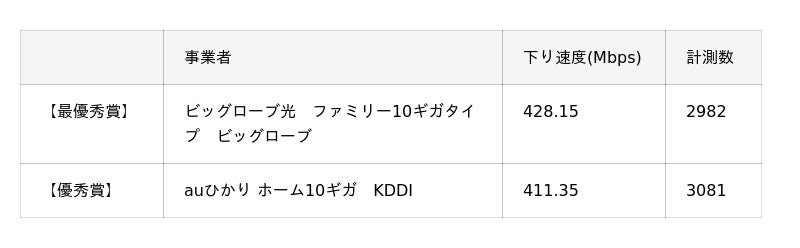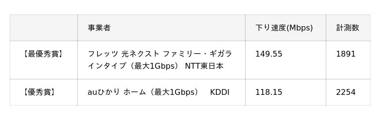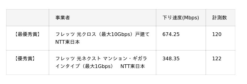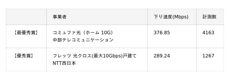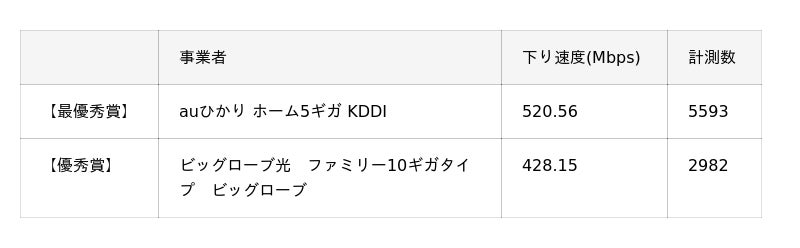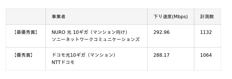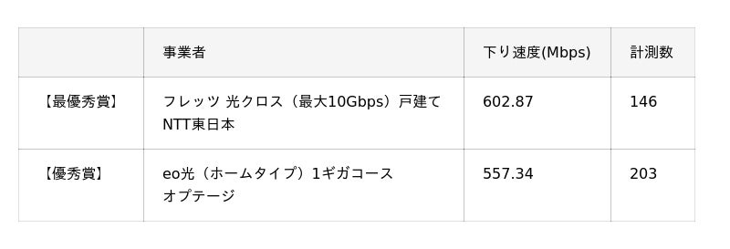 ※ISP部門の順位はNTT東西およびKDDIの回線で契約しているISPのなかで下り平均速度の速い事業者を評価